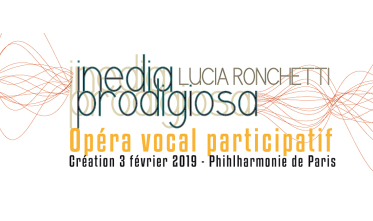 Projet INEDIA PRODIGIOSA, création d’un opéra vocal de Lucia Ronchetti à la Philharmonie de Paris en février 2019, compositrice italienne d’aujourd’hui, réunissant solistes professionnels et amateurs issus de Seine-Saint-Denis.