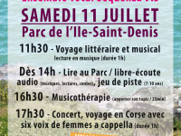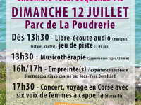animations sur place dès 15h : installations sonores, jeu de piste musical, musicothérapieSamedi 11 juillet / Parc de l'Ile Saint Denis