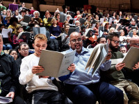 ET 300 choristes amateurs d’Ile-de-France (choriste débutants, choristes initiés habitant dans le 93, chorales du Collège Rognoni et du Collège Henri-IV de Paris, enfants de l'Ecole des Enfants du Spectacle, Association Aurore, Association J'interviendrais, International Visual Theatre, Association Emmaüs Solidarité)