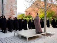 L'idée est de pouvoir établir un chemin qui explore dans un premier temps les espaces ouverts et poreux, et de définir ainsi le sens d'aller, déclinant la raison d'être de la «procession». Mais aller suppose aussi la possibilité d'arriver quelque part, d'arrêter le mouvement et d'occuper un espace, un lieu clos. Être dans un lieu délimité par un périmètre et des murs, permet de construire des résonances (dans un sens métaphorique et musical), de faire résonner les voix de la manière dont la tradition classique européenne a codifié au fil des siècles, mais offre également la possibilité d'atteindre un lieu protégé où pouvoir dire devient perceptible, personnel, intime.