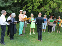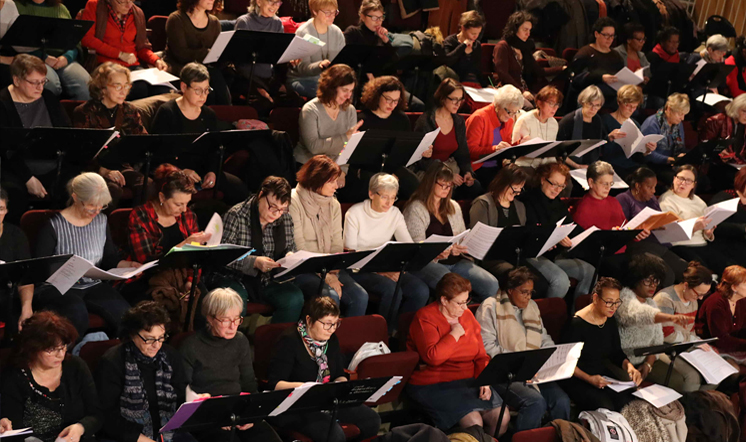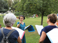 Le spectateur est invité à se déplacer librement pour écouter une succession de pièces à deux, trois ou quatre voix. Celles-ci se font entendre simultanément en différents points du site.