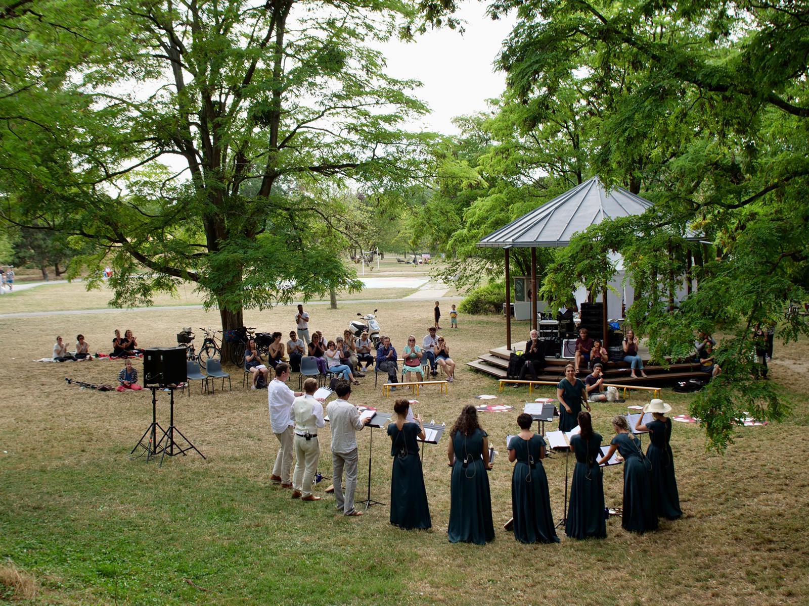 Afin de conclure de manière festive les différents parcours et ateliers menés sur le premier semestre 2023, L'Ensemble a donné un concert en plein air gratuit au Parc départemental de l'Ile-Saint-Denis en juillet 2023, lors de la journée un atelier fresque participatif et un atelier de pratique vocale "parent/enfant" est venu compléter le programme de la journée.